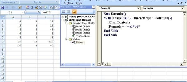 Ejemplo A1=2 B1 = 6 la macro me coloca en C1 la respuesta 12 es correcta pero no me sirve por que necesito es la fórmula C1 me tiene que quedar es =A1*B1 por que el valor de B1 cambia por lo tanto el valor de C1 se tiene que actualizar.