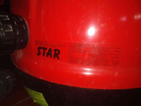 Como dato adicional la depuradora es una Star de 210kg arena silex, diametro 600mm, Superficie filtracion 0,30m, Grano 0,4-0,8mm, presion trabajo 28,4psi 2kg/cm2, presion prueba 42,70psi, 3kg/cm2