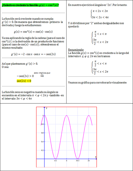 Tengo duda con este ejercicio pues no tengo claro cuándo es creciente la función g(x)=cos^2(x).