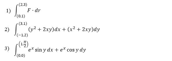 Representación paramétrica de las siguientes integrales y si son independiente de la trayectoria