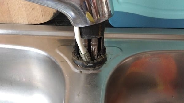 Tengo que cambiar un grifo de cocina. Al intentar sacar el antiguo me encuentro con una pieza dentro de goma que está fuertemente pegada a la pica. ¿Esta pieza pertenece al antiguo grifo o la he de conservar? ¿Debo despegarla? Antes de arrancarla con fuerza querría confirmarlo.