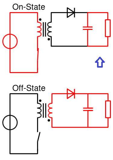 Si alguien me dice, el transformador chopper trabaja con pulsos de corriente continua. Al abrir y cerrar el transistor ¿solo conduce pulsos para una sola dirección o se invierte también la polaridad?