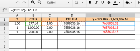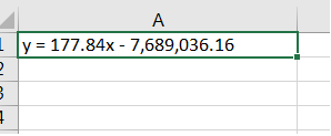 y = (un numero)*X - ( otro numero), por ejemplo, y = 177.84x - 7,689,036.16