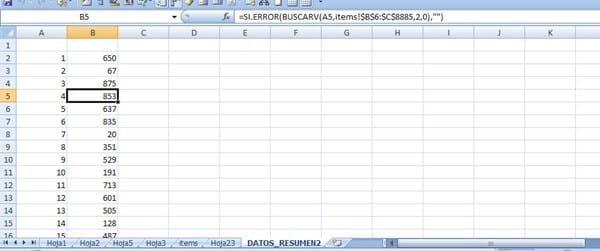 SI. Error(buscarv(a2, items!$B$6:$C$8885,2,0)," ")