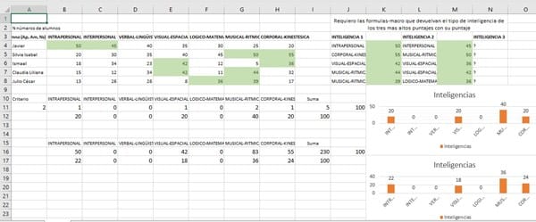 Fórmulas-macro que devuelvan el tipo de inteligencia de los tres más altos puntajes con su puntaje