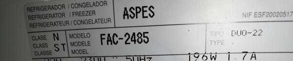 Tengo problemas con la lámpara de un frigorífico Aspes.