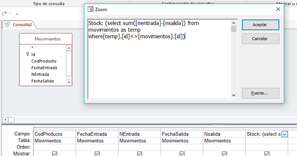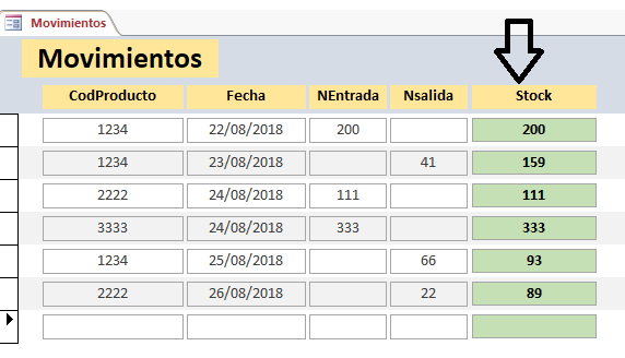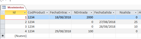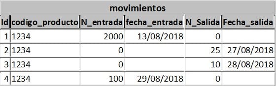 Tengo una tabla donde se registran ingresos y egreso de productos, no las separe pues los movimientos no son muchos.