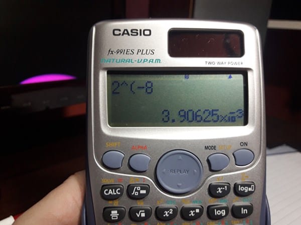 Por ejemplo, cuando hago el cálculo 2 a la -8 con una calculadora científica de la computadora me da: 0,00390625 siendo el resultado correcto y como yo quiero que me lo de.
