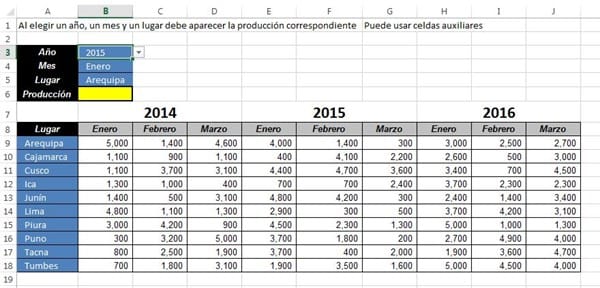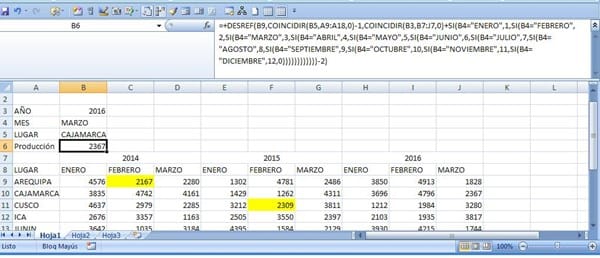 Necesito una fórmula para hallar el dato (producción) . Alguna fórmula con INDICE, DESREF, COINCIDIR