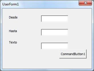 - En el panel del UserForm creas 3 TextBox y un commandbutton