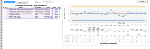 Mostrando todos los datos filtrados para el criterio Semi-cuantitativos. Después de pulsar el botón "Generar Gráfica" La gráfica no captura el rango filtrado y no se muestra con los datos correspondientes al filtro.