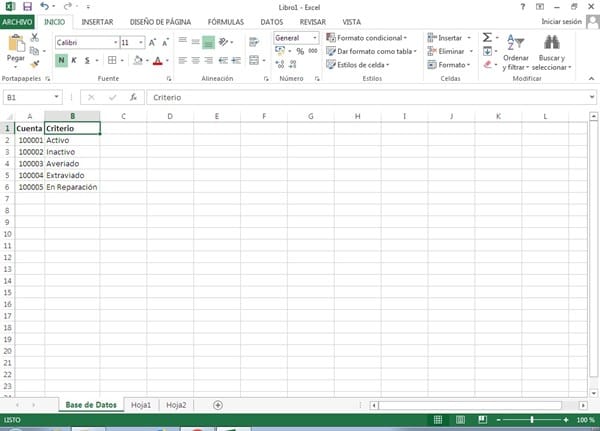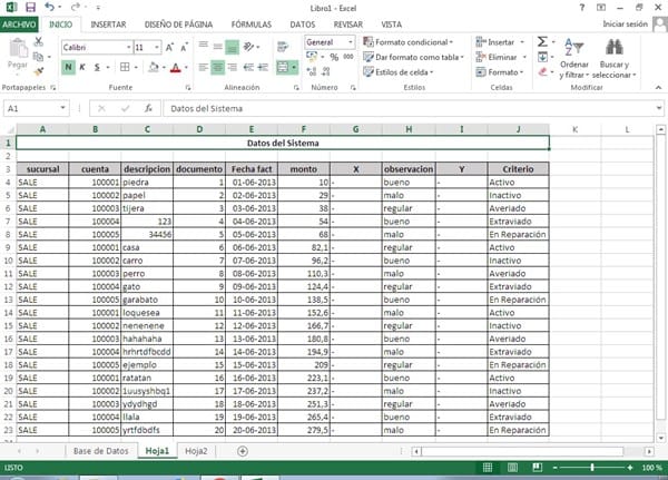 Tengo una hoja llamada "Hoja 1" en la que pego los datos que bajan del sistema de la siguiente manera: