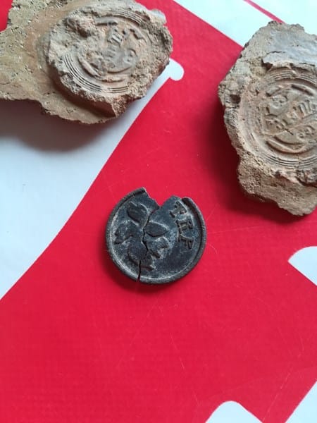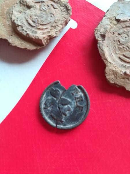 Una moneda Antigua encontrada encima de un puente hallada en barro con su fósil por así decirlo sin saber de qué es tiene una ardilla y la cola parece una trebol o una planta tiene las siglas trf pero Le falta un cacho y no se si tendrá más cosas, ayuda
