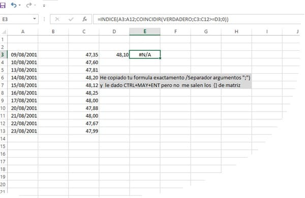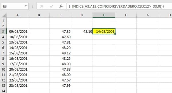 Excel: buscar en columna valor>x y que me devuelva el valor de otra columna.