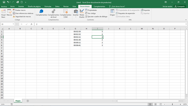 Necesito que si la columna G tiene un tiempo menor a 19 segundo en la misma fila pero en la columna I se ingrese un 1 si es mayor a 20 y menor a 39 un 2 si es mayor a 40 un 3.. Y que haga esto con todos los datos de la columna G la cual tiene tiempo en este formato 00:00:
