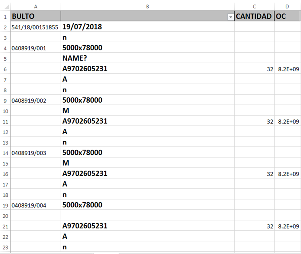 ¿Cómo puedo eliminar las celdas que no contengan una letra seguida de un número de una lista en excel?
