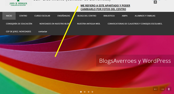 He creado el siguiente blog para mi centro cogiendo unas plantillas existentes y quisiera saber como puedo cambiar las diapositivas que vienen por defecto en la página de inicio para poner las mías propias.