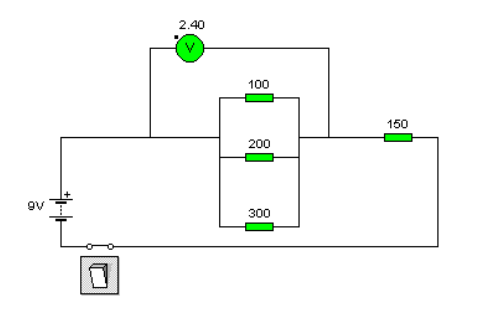Dado el siguiente circuito determina la resistencia equivalente, la intensidad que pasa por cada resistencia y la diferencia de potencial en la resistencia de 150 Ω.