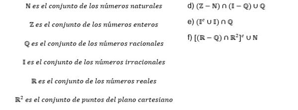 Realizar las siguientes operaciones de conjuntos.