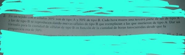 También dice que al ir muriendo las células A van siendo reemplazadas por células B. Lo cual nos lleva a concluir que indistintamente del tiempo que pase, el porcentaje de células A más el porcentaje de células B sera el 100%.