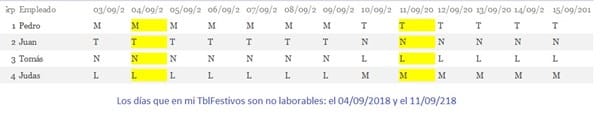 Por otro lado tengo una tabla llamada Festivos con un campo llamado festivo que es de tipo fecha.
