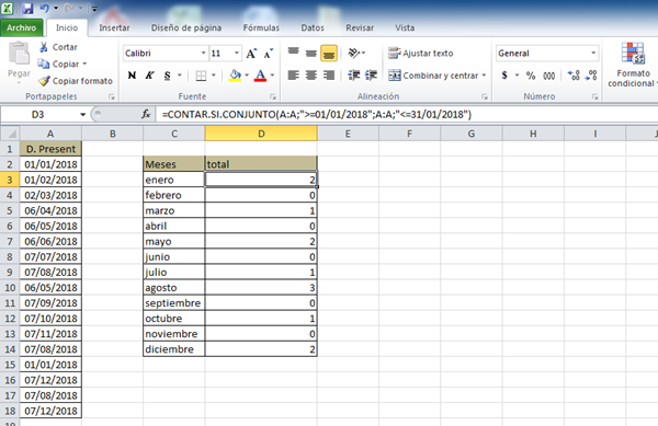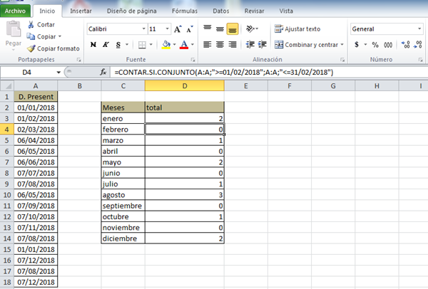 Excel no cuenta algunos meses. ¿Alguien me puede explicar por que? He utilizado la función contar. Conjunto. Si