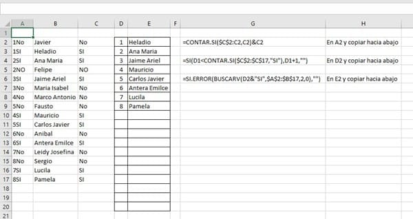 Lo que necesito lograr es: que en una columna C o DE de la misma hoja se genere un listado de solo los alumnos que realizaron la presentación.