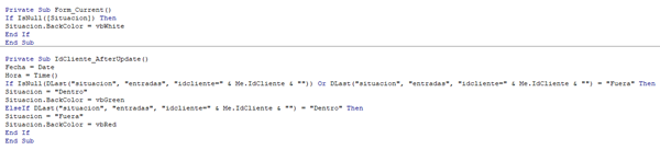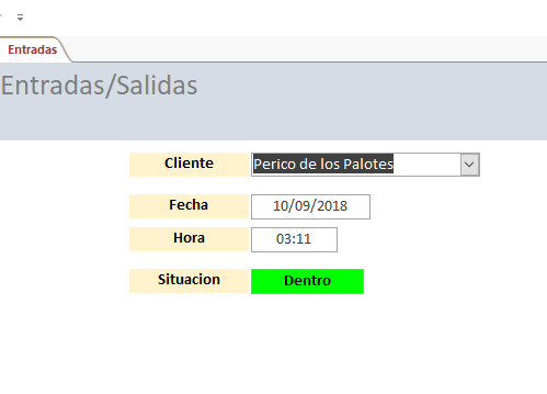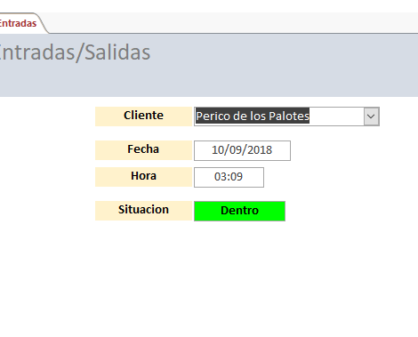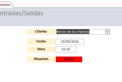 amig@s acudo a vosotros por si me podéis ayudar, he creado una base de datos de control personal con acceso de códigos de barras, al pasar el código de barra por el lector me gustaría poner una etiqueta donde pusiera dentro y en color verde y al pasar la misma persona de nuevo su código por el lector que esa misma etiqueta pusiera fuera y en color rojo, solo conseguí hasta ahora que al entrar si se ponga verde pero no consigo que cambie a rojo y ya estoy derivando a tierra?.