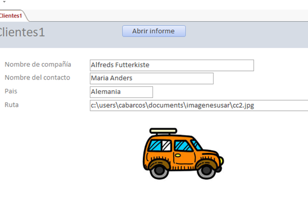 Este formulario "Proyectos" tiene un campo ruta que muestra la fotografía del proyecto, la misma que aparece en el informe.