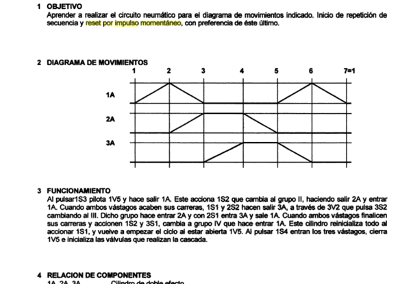 -En el otro caso, el que planteas, el cambio de estado se hace por "Flancos". En este caso, la accion se desarrolla por un "Pulso brusco y momentaneo", sin importar que haga despues el dispositivo que provoco el pulso. O sea, en tu caso, cuando el MICRO da ese "pulso" al ser accionado, provoca el cambio al estado siguiente y la salida de 2A... ¿Qué pasa depues con ese micro?. Al sistema NO-LE-INTERESA. Solo hace falta el "pulso de cambio", si luego queda conectado o desconectado, no afectara que ese otro embolo siga saliendo. Seria como si en el caso del porton, al "activarse la barrera infrarroja", el porton se detuviese y no volviese a arrancar mas, ni siquiera al quedar libre la barrera.