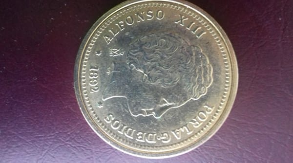 Valor de moneda de 1892 ,Alfonso XIII ,de 20 ptas ,y una muy rara de 1937 de 25 cts con el yugo y las flechas