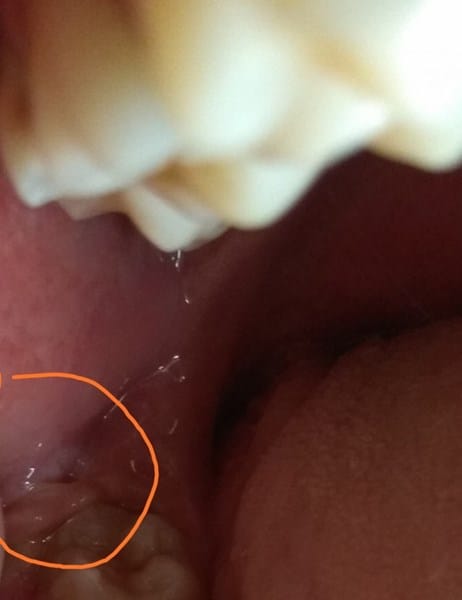 Hace más o menos un mes me salió está bolita, se ubica más que nada sobre y al lado del último molar, el tercer molar. No me duele y es móvil.