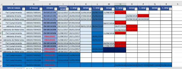 Macro para que al ingresar una nueva fecha de inicio y de vencimiento en la celda siguiente las anteriores se pinten de fondo gris ojo que estas están en un rango por ejemplo desde I2 hasta la enésima y que lo siga haciendo en las demás filas