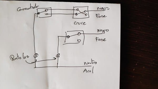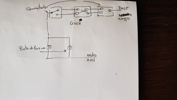 Ahora desearía independizar los puntos de luz, de froma que uno se encendiera desde dos interruptores y el otro punto, desde el tercer interruptor.