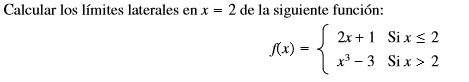 $$\begin{align}&\lim _{x\to \:2+}\left(x^3-3\right)=5\\&\lim _{x\to \:2-}\left(2x+1\right)=5\end{align}$$lo hice reemplazando el valor 2 en ambas.
