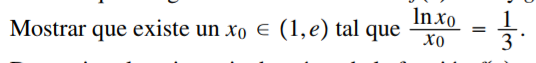 Analicemos los valores de cada una de estas funciones en los límites del intervalo propuesto: (1; e):