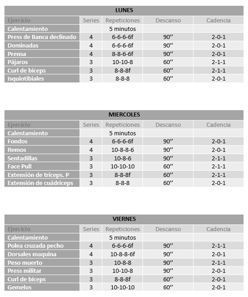 Y luego me prepararé una Torso-Piernas o una Tirón-Empuje.