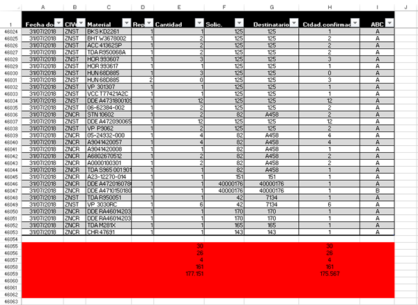 (Siempre es igual el acomodo)hasta dejarlas en solo 9 columnas, para después jalar los datos a otra base simplemente usando el "=". El problema es que en la parte de abajo de la base aparecen los totales de las tablas, que no los necesito.