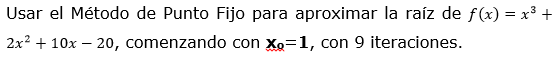 Usar el Método de Punto Fijo para aproximar la raíz de