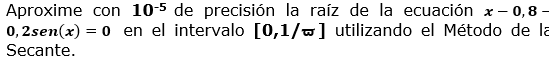 Matemáticas armndo Rodriguez el 24 sep. 18 Desarrollar los ejercicios métodos numéricos Aproxime con 10-5 de precisión la raíz de la ecuación en el intervalo [0,1/ϖ] utilizando el Método de la Secante. Seguir Siguiendo Dejar de seguir