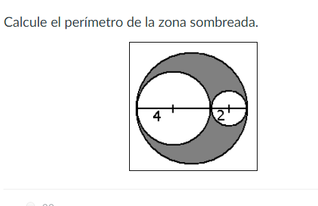 Hallar el perímetro del área sombreada del circulo