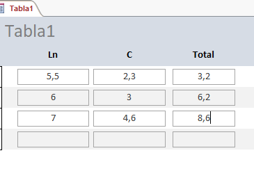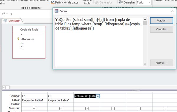 Quiero realizar una operación de suma y resta en access. Como se muestra en la imagen