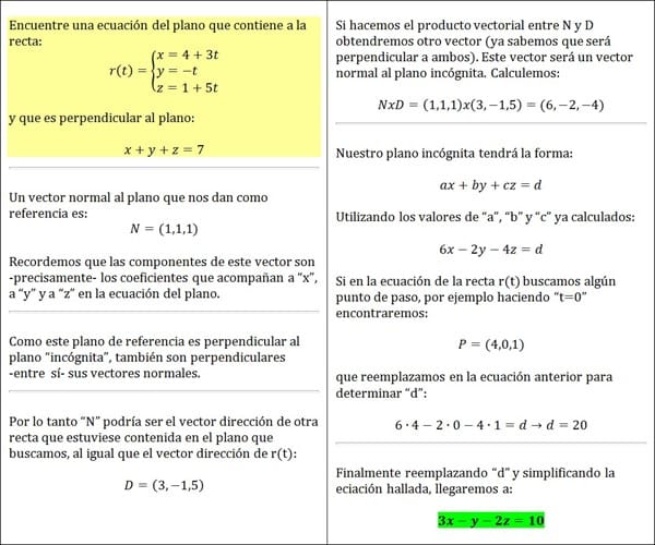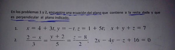 Ecuación del plano que contiene una recta y es perpendicular a un plano indicado
