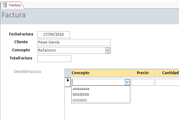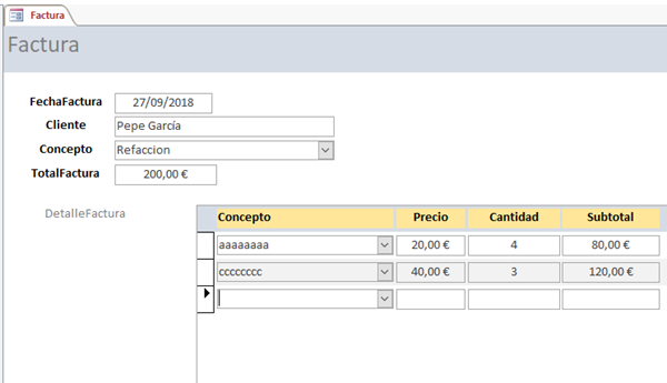 Deseo efectuar una cotización, pero dependiendo de si es un servicio llame a una hoja donde cotice en general, es decir describa el servicio y coloque el precio, pero si es una refacción llame a otro subformulario donde permita ingrese el nombre de la refacción y me arroje el precio, es esta parte se pueden involucrar una o más refacciones y al terminar de capturar las refacciones se efectúen unos cálculos que vienen siendo como el valor agregado, cuando se llegue a esto el valor final se pueda poner en la cotización final que se le envía al cliente
