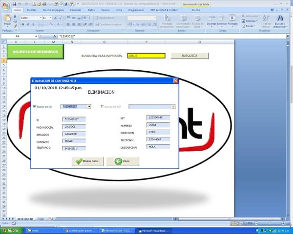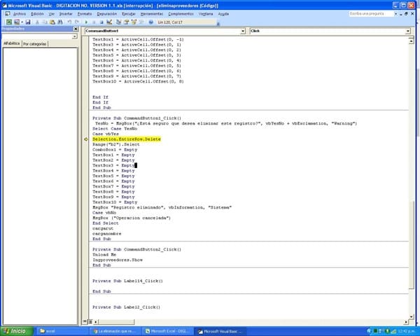 La eliminación que realizo me tira error por excel