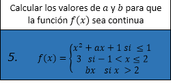 Del lado izquierdo, el limite desde la izquierda de la funcion x^2 + ax + 1 cuando x tiende a 1 = 3 ................................con lo cual: a= 1.