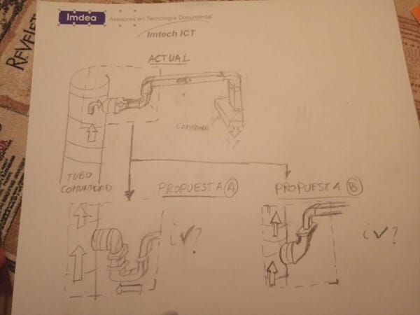 Acaban de terminarme una reforma y me entran los humos y olores de los vecinos por la campana, he hecho un dibujo ilustrativo de lo que tengo y las propuestas que se me ocurren plantear al constructor, quiero ir con una idea definida válida para convencerle de su error, si lo cometió.