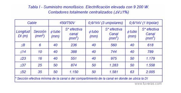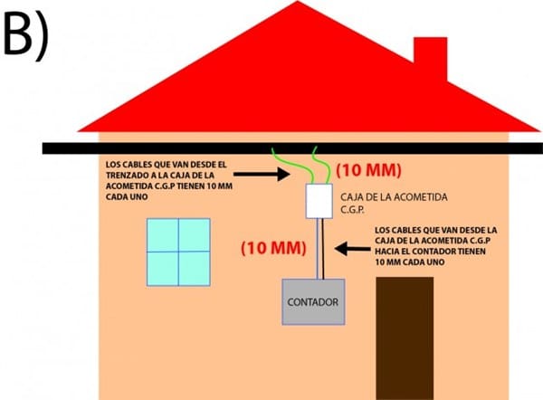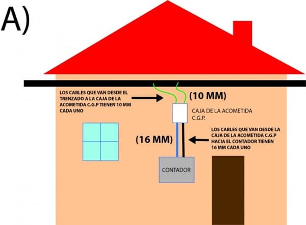 - De la acometida al contador (neutro / fase, cada uno con 16 mm de grosor de cable)