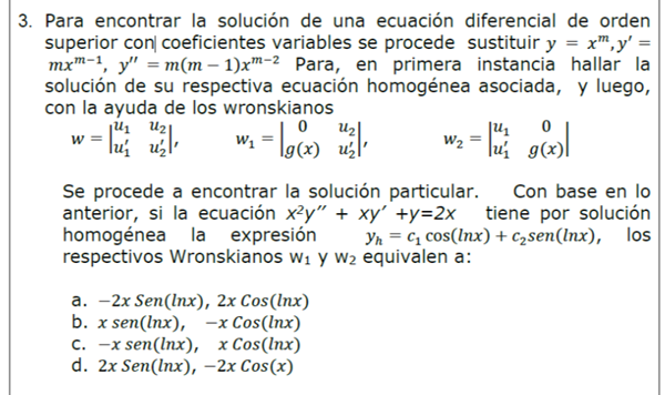 MatemáticasCálculoProfesoresIngeniería Industrial Yudy Ramos el 4 oct. 18 Como puedo encontrar la solución de una ecuación diferencial de orden superior Cual es el procedimiento adecuado para lograr saber cual es la respuesta correcta Seguir Siguiendo Dejar de seguir