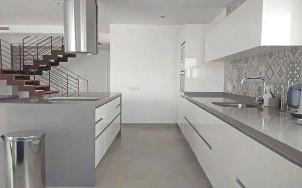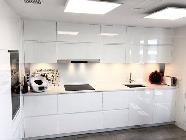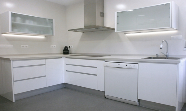 Duda de cocina poner muebles, azulejos y encimera brillo